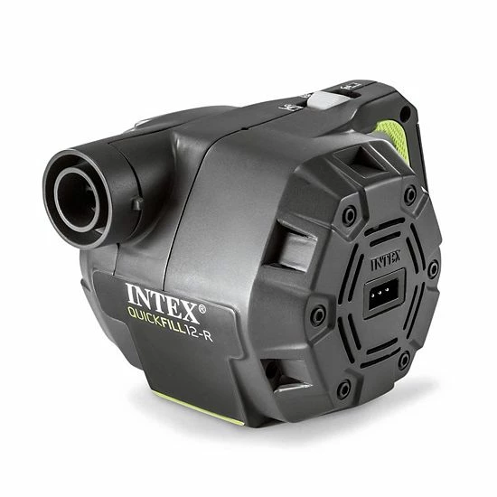 No matter where you go, you can get your inflatable furniture, pool floats, and air mattresses filled and ready in no time at all with the Intex 66641E 120-Volt Quick-Fill Cordless Rechargeable Air Bed Pump.This convenient air pump is cordless and can be easily recharged with either the included 12-volt DC power car charger or AC wall charger. Inflating any mattress is a breeze with a max airflow of 650 liters per minute and the 3 interconnected nozzles for a variety of inflation jobs. This pump also features an automatic over-charge cut-off for safety protection. Easily take this pump anywhere you go with its compact design and handy carrying handle.Spend more time enjoying your inflatables and less time inflating them with this Intex 120-Volt Quick Fill Cordless Rechargeable Air Bed Pump.
