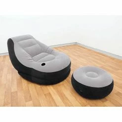 Intex 68564E Inflatable Ultra Lounge Chair With Cup Holder And Ottoman Set, Gray