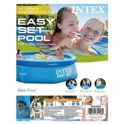 - Intex Easy Set 10 x 30 Foot Above Ground Inflatable Round Swimming Pool, Blue and the Intex 10′ Easy Set Swimming Pool Debris Cover