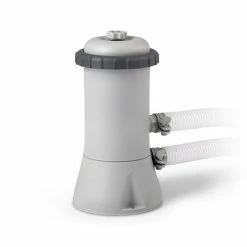 Make a splash in your neighborhood by hosting a backyard pool party this summer with this Intex 12-Foot by 30-Inch Above Ground Swimming Pool & Intex Krystal Clear 530 GPH Easy Set Pool Replacement Cartridge Filter Pump.Made with a sturdy metal frame, this above ground pool will make your summer fun and refreshing. This metal pool is an affordable and easy-to-set-up alternative to more complicated steel walled pools. They are also a more durable alternative than most inflatable pools on the market. Measuring 12-Feet by 30-Inches and able to hold up to 1,718 gallons of water, this pool is the perfect size for any backyard fun.Easily fill this above ground pool with the drain plug access that will let you use a garden hose to drain water that is in the pool. Make sure to pick up the proper pool filter (sold separately) to ensure that your new pool will stay clean for your whole family all summer long.Designed for all 8-foot, 10-foot, and 12-foot Intex Above Ground Pools, it’s also great for Sand-n-Sun, Aqua Leisure and other pools with 1.25-inch diameter hose connections. To install, Just hook up hoses and plug into a 110-120V power outlet. Easy-to-clean, replaceable 29000E type A filter cartridge included.The GFCI (ground fault circuit interrupter) feature on the 530 GPH pump provides additional safety and protection. Your pump will shut off automatically if the electrical current is exposed to water. Please note, the previous Intex model 58603E does not include this additional feature.