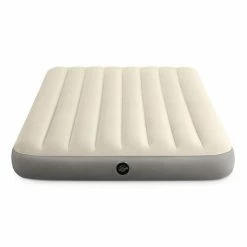 For supreme comfort and amazing durability, look to the Dura-Beam Standard Series Airbed by Intex.The secret is in the Fiber-Tech beam construction, which is comprised of thousands of high-strength polyester fibers that provide enhanced comfort, stability, and support. Each bed is covered in plush flocking that is soft to the touch, and the horizontal air chambers provide added stability and support around the entire bed. And best of all, the airbed is easy to inflate thanks to the built-in, 2-in-1 valve with extra-wide openings, which ensure fast inflating and deflating. This single-height standard series airbed is raised 10 inches from the floor. At 75 x 54 inches, the airbed is an official full size, making it a good fit for fitted sheets. Whether you’re sleeping at the in-law’s overcrowded house or setting up a guest bed in the basement, the Dura-Beam Standard Series Airbed by Intex is an ideal and comfortable choice for a great night’s sleep.