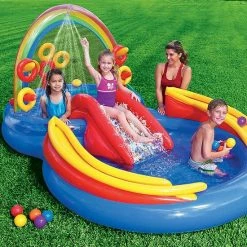 - Your kids will have hours of fun in the Intex Rainbow Ring Water Play Center