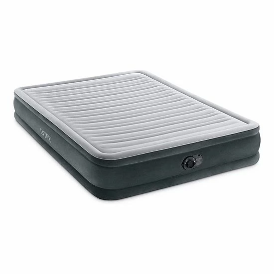 Cozy, compact, and too comfortable for words, this Intex Dura-Beam Plush Queen Air mattress is there to help you drift off into dreamland peacefully wherever you lay your head down.This airbed provides dreamy nights of shut-eye camping, on vacation, in dorm rooms, or for the guests in your home. With a built-in air pump, it inflates and deflates with the switch of a button and can be adjusted to your desired level of firmness using the dial.The air mattress makes it simple to get in and out of and the Dura-Beam technology construction has high-strength polyester fibers that won’t stretch over time. It’s ultra-lightweight, can hold up to 300 pounds, and comes with a carry bag for your convenience.Catch a good night of Zzz’s with this Intex Dura-Beam Plush Queen Air mattress and feel at home every time you inflate it.