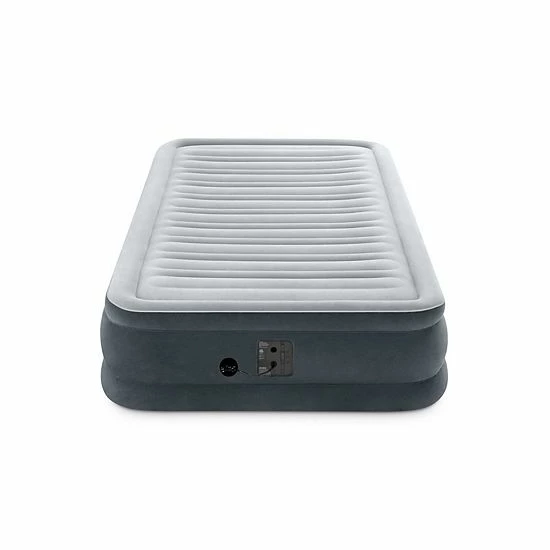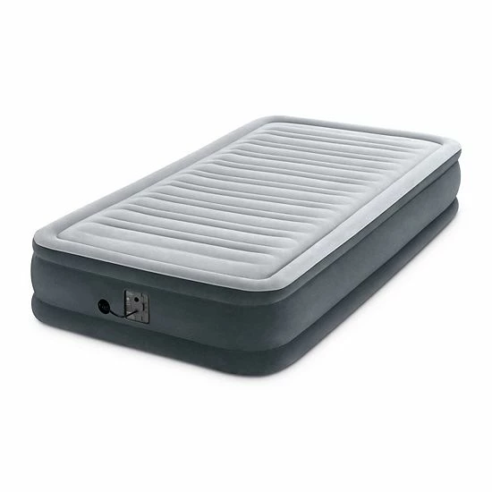 Cozy, compact, and too comfortable for words, this Intex Dura-Beam Plush Twin Air mattress is there to help you drift off into dreamland peacefully wherever you lay your head down.This airbed provides dreamy nights of shut-eye camping, on vacation, in dorm rooms, or for the guests in your home. With a built-in air pump, it inflates and deflates with the switch of a button and can be adjusted to your desired level of firmness using the dial.The air mattress makes it simple to get in and out of and the Dura-Beam technology construction has high-strength polyester fibers that won’t stretch over time. It’s ultra-lightweight, can hold up to 300 pounds, and comes with a carry bag for your convenience.Catch a good night of Zzz’s with this Intex Dura-Beam Plush Twin Air matress and feel at home every time you inflate it.