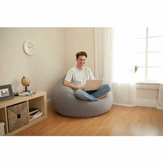 Chill out and relax on this good ole’ Intex Inflatable Beanless Bag Chair. You are never too old for a classic, beanless bag chair. It inflates quickly and can be deflated easily when more space is needed. The beanless chair looks cool and is the most comfortable chair wherever you plop it down.It has a waterproof flocked top surface, a contoured seat for extra comfort, and a corduroy texture with a grey color that is complementary to your dorm room, bedroom, basement, or any room. Watch a movie, take a mid afternoon snooze in between classes, and have a handy extra seat for your friendsCozy and comfortable, we have a feeling you and this Intex Inflatable Beanless Bag Chair are going to get along just fine.