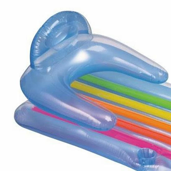 Soak up the rays without sacrificing comfort on this 2 pack of Intex King Kool Loungers. Featuring a comfortable built in pillow, 2 full armrests, a cup holder, and an opening by the feet for you to splash your feet, you’ll fall in love with the comfort of this lounger. Comprised of durable vinyl, the transparent inflatable I beams each have a vibrant color. This floating lounge is the right choice for a warm summer day out on the water!Please note: Style may vary between variations pictured (blue or clear).
