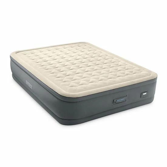 When you think of something luxurious and comfortable, the Intex PremAire Dream Support Air Mattress is the first thing that comes to mind.Being a PremAire mattress means enhanced comfort, stability, and support. The elevated pillowtop has hundreds of inter-connected air pockets to allow air to flow gently across the surface. The airbed adjusts to your preference of firmness for a top-notch night of rest. The built-in pump inflates and deflates with a switch of a button. It comes with a carrying bag and is ready to go wherever you go. It can handle a weight capacity of up to 600 pounds and the Fiber-Tech construction doesn’t stretch over time. Plus, you can control your desired firmness using the digital comfort pump control panel and charge your electronics using the included USB port.Sleeping is great, but sleeping comfortably is even greater. The Intex PremAire I Elevated Air Mattress ensures a magical night of slumber no matter where you choose to inflate it.