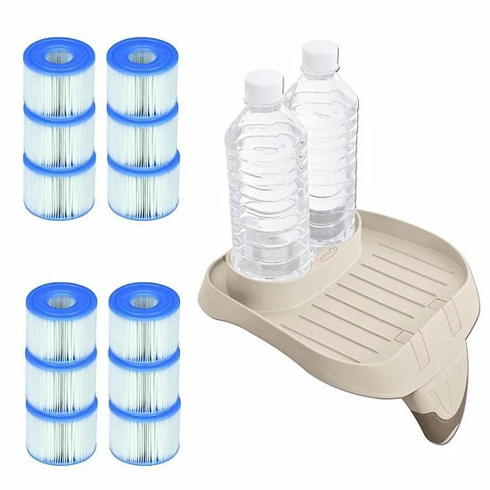Ah, get in your inflatable hot tub and fully relax with a beverage in hand and set it down on this handy Intex PureSpa Attachable Cup Holder And Refreshment Tray.Add the convenience of having your drinks and snacks at hand with this accessory. It holds 2 standard sized beverage containers and has a nice little tray for other goodies. It securely attaches to the spa wall and is removable. It’s made with laminated material, has a contoured shape, and perfectly complements the color scheme of your Intex PureSpa Hot Tub. Don’t keep getting in and out of your hot tub for your drinks and snacks, have the Intex PureSpa Attachable Cup Holder And Refreshment Tray by your side.Keep your spa water clean and Intex PureSpa performing at its best by using genuine Intex PureSpa Type S1 Pool Filter Cartridges.This is the authentic replacement cartridge for your Intex PureSpa. It works with all Intex PureSpas models including 28403E, 28407E, 28443E, 28453E, 28421E, 28423E, 28413E, and 28453E. Replace your filter cartridges regularly for the best results. It is recommended that you replace cartridges every 2 weeks to maximize your spa’s performance.Help ensure the longevity of your Intex PureSpa by regularly choosing Intex PureSpa Type S1 Pool Filter Cartridges.