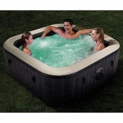 - Portable 6-person inflatable square hot tub spa with 140 shooting high-powdered jets and full maintenance kit