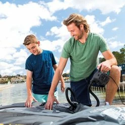 - 120-volt air pump also deflates, too, with a flip of its switch