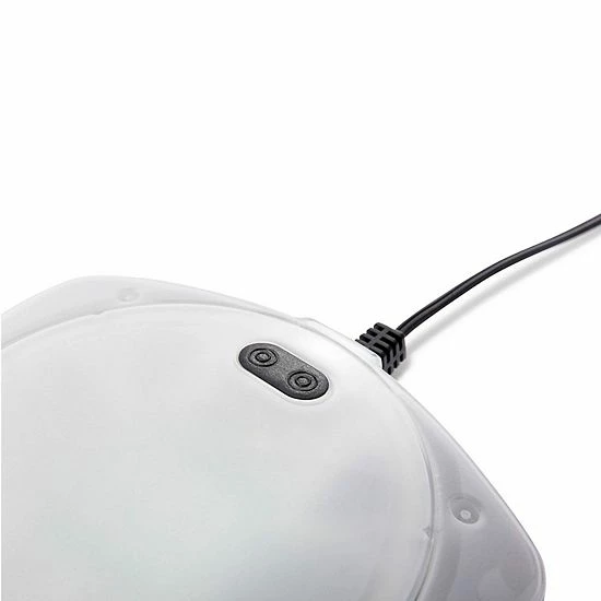 Keep the pool fun going into the evening with the Underwater Multi Color LED Magnetic Above Ground Swimming Pool Wall Light by Intex. This above-ground pool light illuminates pools up to 24 feet in size and can be easily mounted to the side of any soft-sided, above-ground pool. Just place the light unit inside the pool and the transmitter on the outside pool wall. The transmitter’s magnetism will do the rest and help create an epic light show in your pool. Plus, if the light unit is separated from the transmitter, it will float for easy removal, and the transmitter power source is safe to use near water. Switch between the standard white light and multi-color mode with 4 different color options. Whether it’s night swimming at a sleepover or hosting a backyard shindig, light up your pool to show off its sparkling clarity.Stay safe and enjoy a nighttime swim with the Underwater Multi Color LED Magnetic Above Ground Swimming Pool Wall Light by Intex.